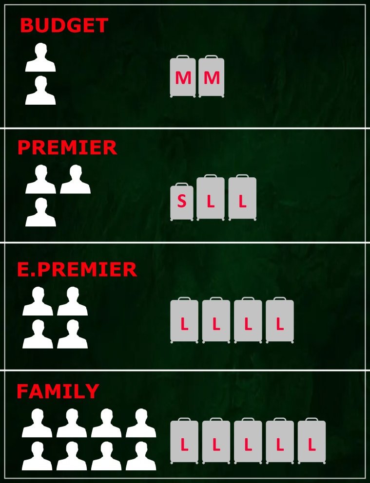 - 1 Small & 2 Large Luggage